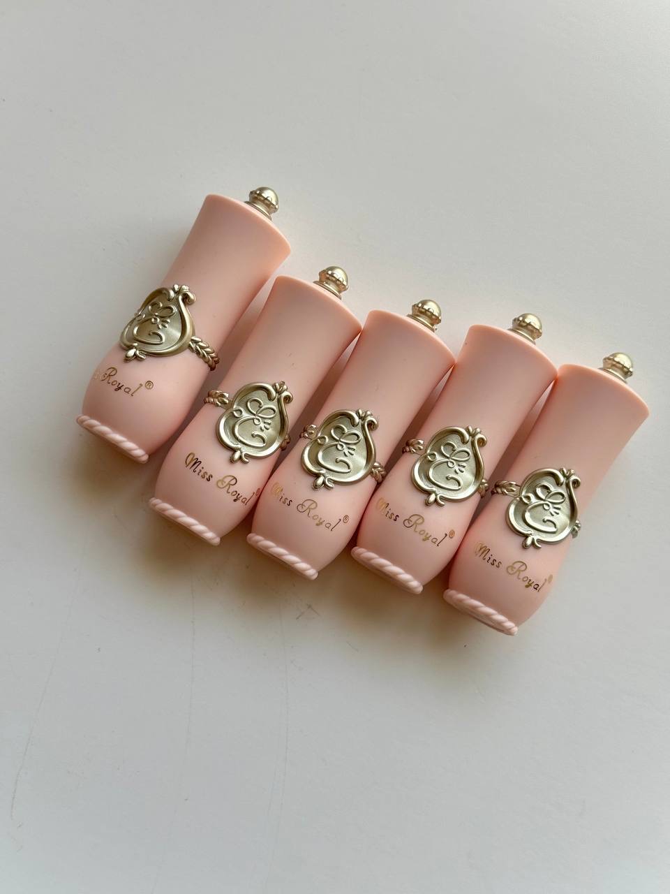 • بستهبندی فانتزی و شیک به رنگ صورتی مات با تزئینات فلزی طلایی رنگ